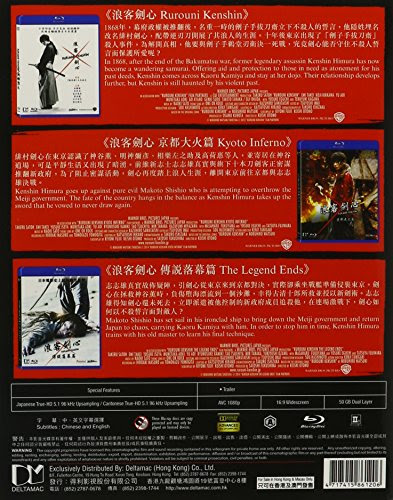Languages: Japanese, Cantonese / Subtitles: English, Traditional Chinese / (3 Movie Set including Rurouni Kenshin (2012), Rurouni Kenshin: Kyoto Inferno (2014), Rurouni Kenshin: The Legend Ends (2014). Synopsis: This live action movie is based on popular Japanese manga series "Rurouni Kenshin", which is also called "Samurai X" in English title.